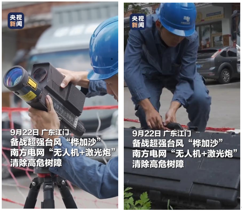 9月24日,央视新闻一则关于高科技清障作业的报道引发广泛关注。在超强台风"桦加沙"来袭前夕广东江门电力抢险现场,一束精准的激光划破风雨,将高压线旁的危树瞬间切割。视频一经发出,短短几个小时,点赞就超过15万.尽管报道未直接点名,但许多眼尖的行业伙伴已认出:这台“低调出镜”的设备,正是四川红岸基地自主研发的激光炮。